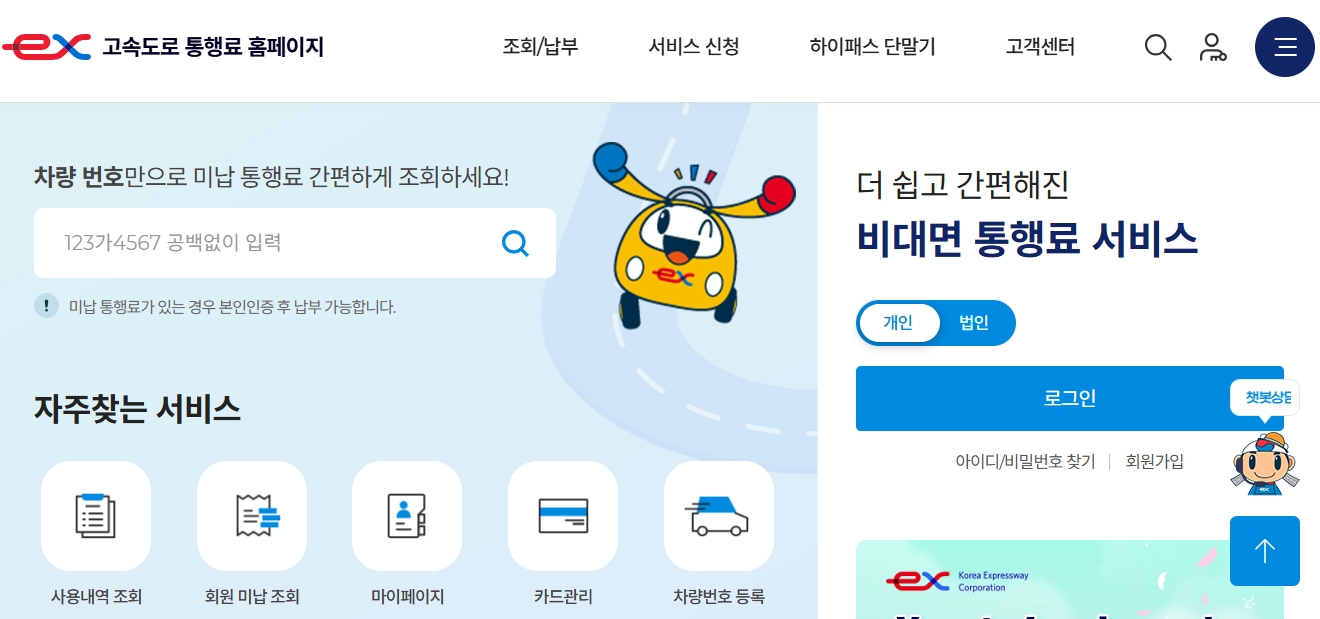 하이패스 미납요금 조회 방법 (준비물: 차량번호)